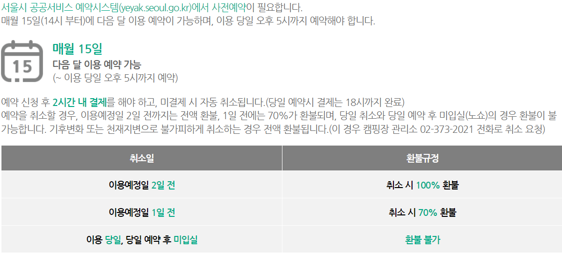 - ๋งค์ ์ ๋ณด: ์บ ํ์ฅ ๋ด ๋งค์ ์์๋ ์บ ํ์ฉํ ๋์ฌ ์๋น์ค๋ฅผ ์ ๊ณตํ์ง ์์ต๋๋ค. ๋ํ, ์ฃผ๋ฅ, ์กฐ๋ฆฌ๋ ์์, ํญ์ฃฝ ๋ฑ์ ํ๋งค๋ ์ด๋ฃจ์ด์ง์ง ์์ผ๋ฏ๋ก ํ์ํ ๋ฌผํ์ ๋ฏธ๋ฆฌ ์ค๋นํด ์ค์ ์ผ ํฉ๋๋ค.